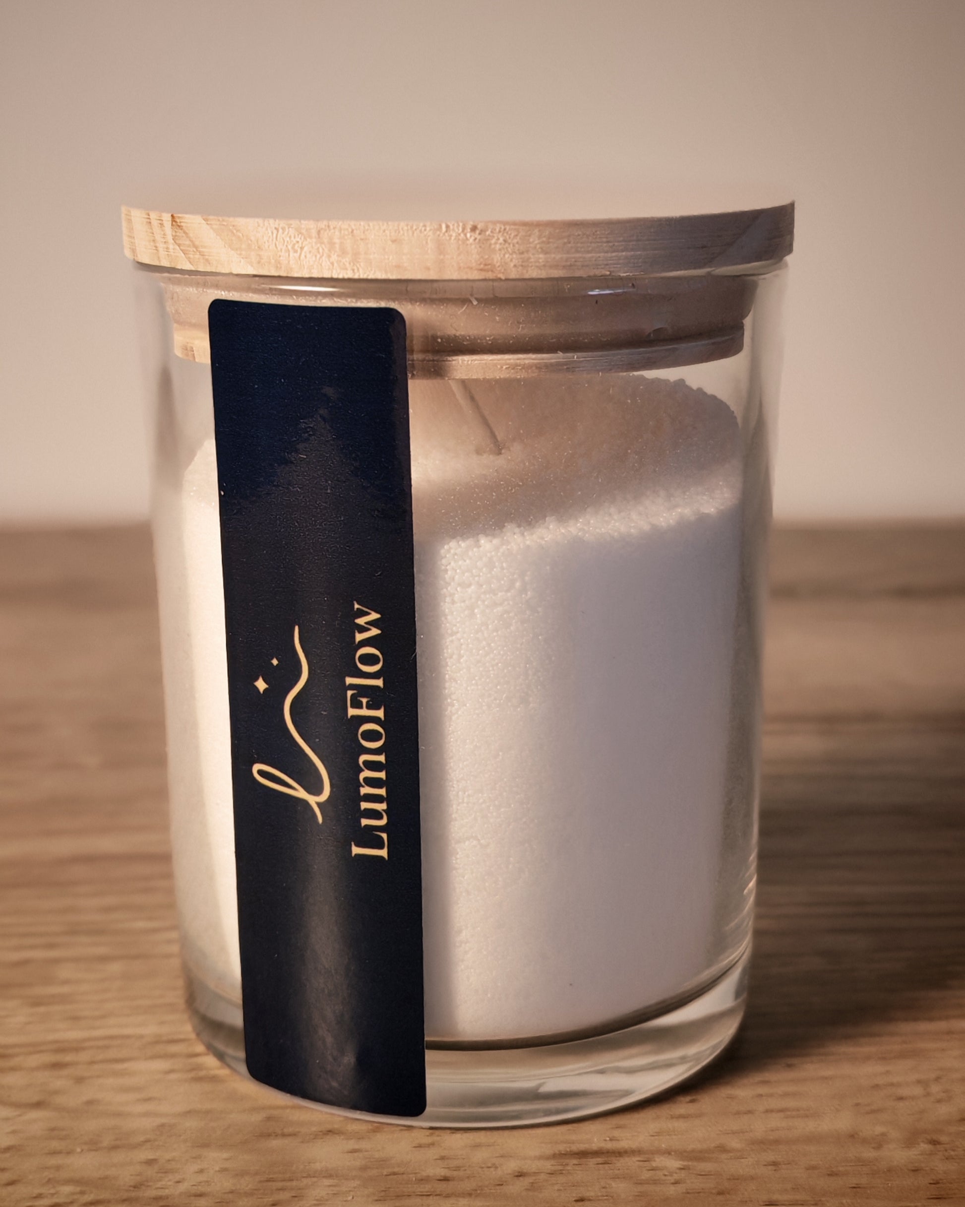 LumoFlow-kynttilä on valmistettu korkealaatuisesta kynttilähiekasta, joka palaa kauniisti noin 20 tunnin ajan. Lasipurkki ja bambukansi tuovat tuotteelle luonnonläheisen, rauhallisen ilmeen – täydellinen sisustukseen, lahjaksi tai omiin hetkiin pysähtymistä varten.